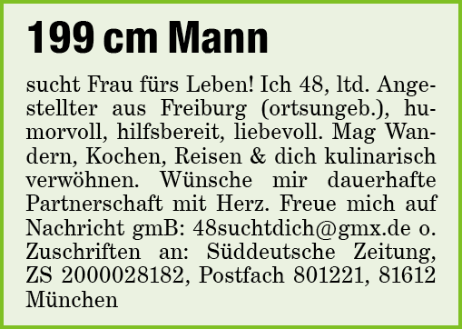 Rubrik: Bekanntschaften Er sucht Sie