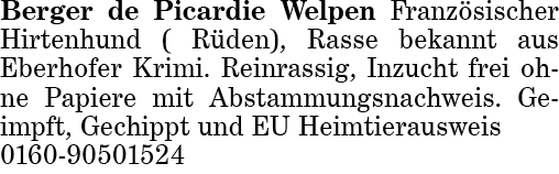 Anzeige vom 15.10.2025 in der Rubrik "Tiermarkt"