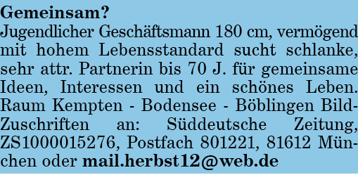 Rubrik: Bekanntschaften Er sucht Sie