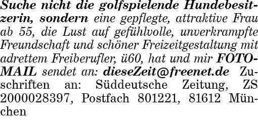Rubrik: Bekanntschaften Er sucht Sie