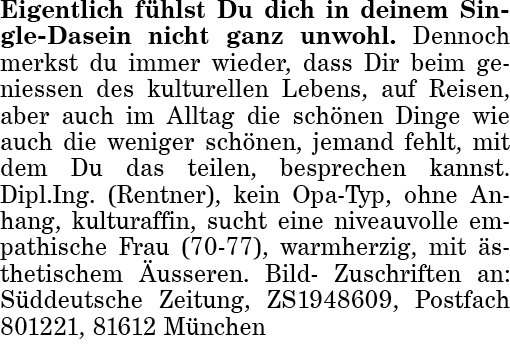 Rubrik: Bekanntschaften Er sucht Sie
