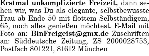 Anzeige vom 15.11.2025 in der Rubrik "Bekanntschaften Er sucht Sie"