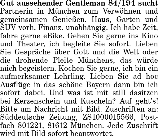 Rubrik: Bekanntschaften Er sucht Sie