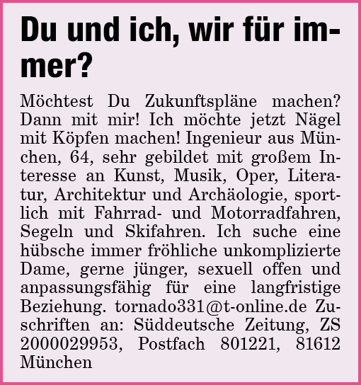 Anzeige vom 14.2.2026 in der Rubrik "Bekanntschaften Er sucht Sie"