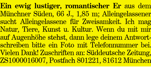 Erscheinungsdatum: Anzeige vom 14.2.2026 in der Rubrik "Bekanntschaften Er sucht Sie"