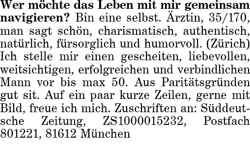 Anzeige vom 11.10.2025 in der Rubrik "Bekanntschaften Sie sucht Ihn"
