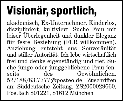 Anzeige vom 17.1.2026 in der Rubrik "Bekanntschaften Er sucht Sie"